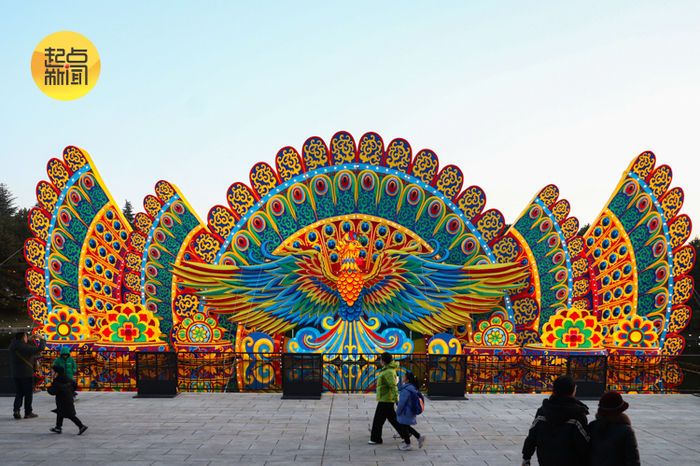 跟随人群继续往里走,便来到了主展区“有凤来仪”“鼓乐齐鸣”等40组文化灯组,新春佳节的喜庆气氛瞬间“爆棚”,市民和游客们纷纷驻足拍照,用手机镜头记录下眼前的美好时光,重温唐风雅韵。