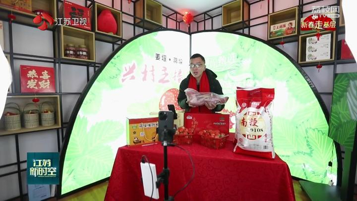 泰州市姜堰区蒋垛镇许桥村的党总支副书记陈鑫说:“春节期间也是不停播的,我们会每天推出不同的主题,走进农户家里面,把村民自己家里的特色农产品,还会把本地的特色民俗,通过手机镜头分享给全国各地的好朋友们。”