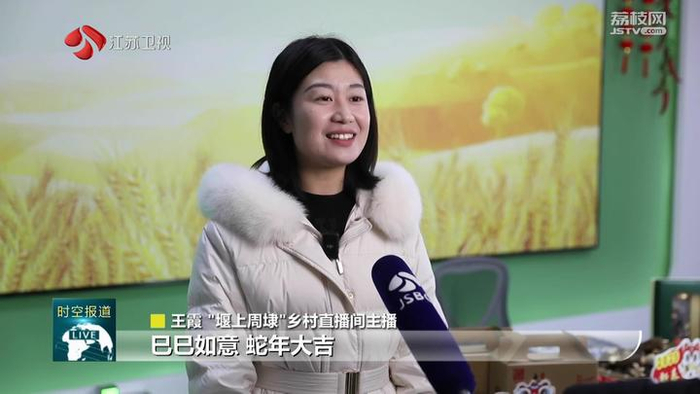 “堰上周埭”乡村直播间主播王霞说:“巳巳如意,蛇年大吉,新的一年希望我们直播间可以越办越红火!”