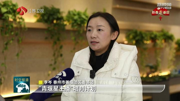 泰州市姜堰团区委书记李岑说:“我们联合多部门组织实施了‘青堰星主播’培育计划,全力为青年主播发展提供技术指导、资金支持、品牌产品搭建、场地提供等‘全链条’服务,为乡村全面振兴注入了新活力。”