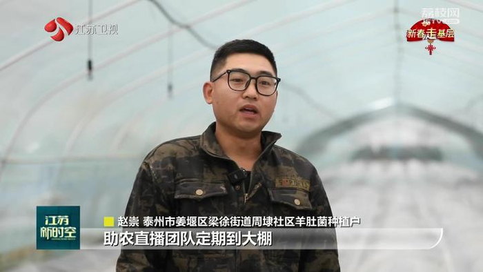 泰州市姜堰区梁徐街道周埭社区羊肚菌种植户赵崇说:“助农直播团队定期到大棚帮我们拍摄短视频进行宣传,丰收的时候通过直播带货的形式,帮我们在线上销售,极大地拓宽了我们销路。”