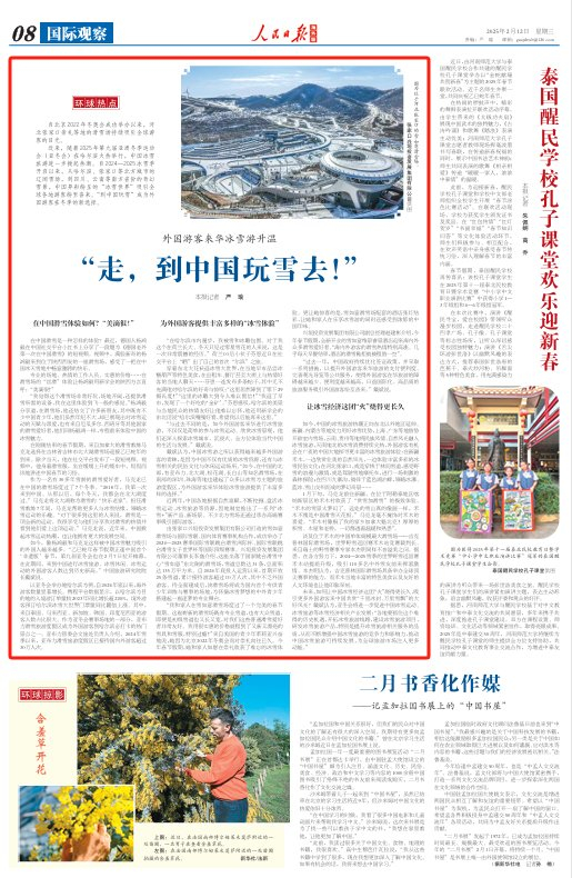 如今,像杨鸿毅和马克龙这样被中国冰雪魅力吸引的外国人越来越多。“乙巳蛇年春节假期正逢中国首个‘非遗版’春节,第九届亚冬会也在2月7日拉开帷幕,在此期间,来到中国进行冰雪旅游、冰雪休闲、冰雪运动的外国游客人数达到历史新高。”中国旅游研究院院长戴斌说。