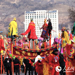 湟中鲁沙尔高跷出街。人民网记者 甘海琼摄
