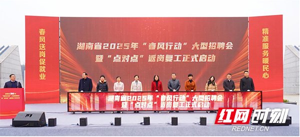 湖南省2025年“春风行动”大型现场招聘会暨“点对点”返岗复工发车仪式现场。