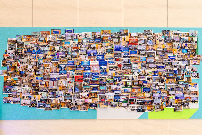 模速空间内部的照片墙,展示为AI企业举办的各类活动。