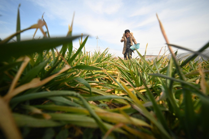 2025年2月23日,农民在山东省聊城市茌平区贾寨镇崔老庄村田间给小麦进行施肥作业。