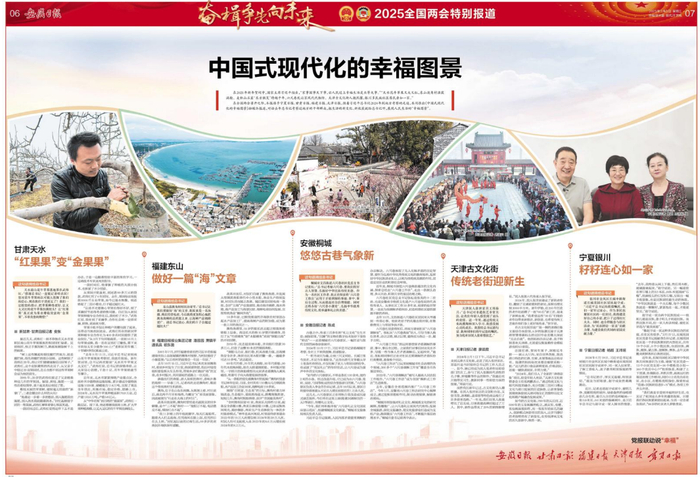 在全国两会召开之际,本报携手宁夏日报、甘肃日报、福建日报、天津日报,循着习近平总书记2024年到地方考察的足迹,共同推出《中国式现代化的幸福图景》融媒体报道,对话去年总书记考察过地方的干部群众,把生活的新变化、新收获说给总书记听,展现人民生活的“幸福图景”。