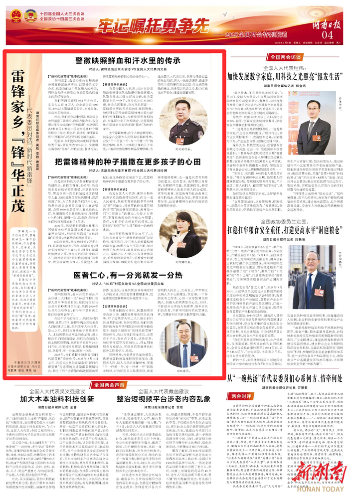 在第62个学雷锋纪念日到来之际,我们邀请3位出席全国两会的在湘全国人大代表、住湘全国政协委员,对话3位“新时代新雷锋”,听他们讲述动人的追“锋”故事,感悟在新时代绽放璀璨光芒的雷锋精神。