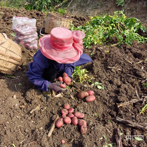走进王家寨村的田间地头,村民们正抢抓晴好天气,忙着采收土豆。他们弯腰翻土、小心挖掘、挑拣分类,再将土豆装袋搬运,一派热火朝天的劳作景象。