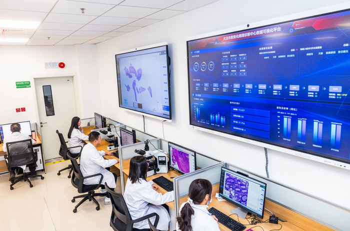2024年12月20日,大冶市数智化病理诊断中心,医生借助数字化和AI技术寻找病理。(湖北日报全媒记者 薛婷 通讯员 程良友 周巍 摄)