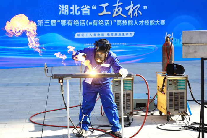 2024年12月15日,湖北省“工友杯”第三届“鄂有绝活(e有绝活)”高技能人才技能大赛决赛在武汉举行。(湖北日报全媒记者 李溪 通讯员 杨健 摄)