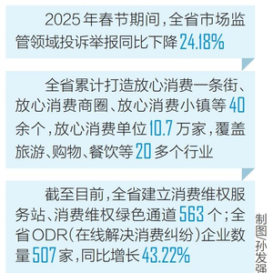 从打造放心消费“海南模式”,到开展“守护消费”行动,近年来,海南坚持拉高线、守底线,持续回应消费者所盼。2025年春节期间,全省市场监管领域投诉举报同比下降24.18%。
