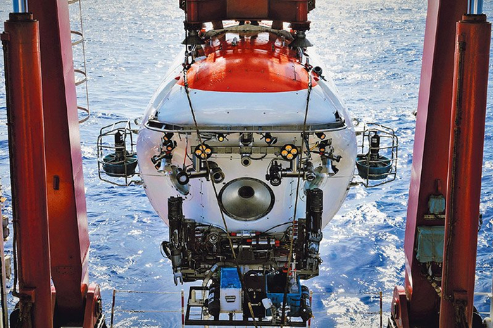 图为2024年9月11日,“蛟龙”号载人潜水器在维嘉海山完成2024西太平洋国际航次科考最后一个潜次下潜作业。作为我国自主研发的7000米级载人潜水器,“蛟龙”号是我国认识深海和经略深海的国之重器。 新华社记者 王聿昊/摄
