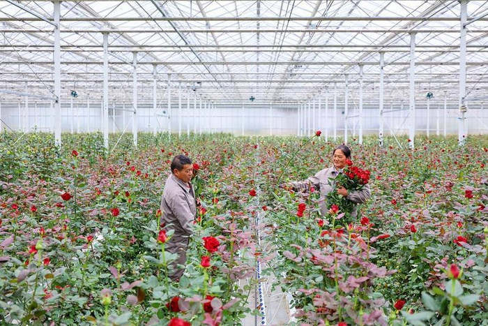 目前,园区规模种植了48种玫瑰鲜切花,年产量3956万枝。“园区里出产的鲜切花,有四成出口。”杨佳介绍,依托附近的丽江机场,这里的鲜切花等产品可以空运直达北、上、广等城市,实现36小时内送达,产品销往日本、越南、俄罗斯等国家。