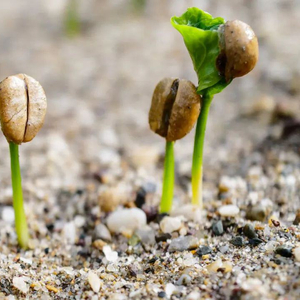 这是在云南省普洱市思茅区白沙坡咖啡试验示范基地拍摄的发芽的咖啡种子。新华社记者 孙瑞博 摄