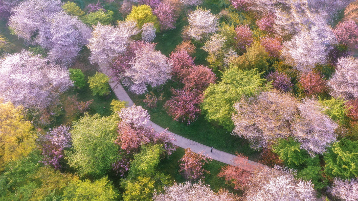 (历史小知识:中日樱花的千年互动——唐朝(公元8世纪),中国国力强盛,万国来朝,日本仰慕中华文化,多次派遣唐使到中国学习,这些遣唐使将樱花带回了日本,相比日本中国栽种樱花的历史早了一千多年。)