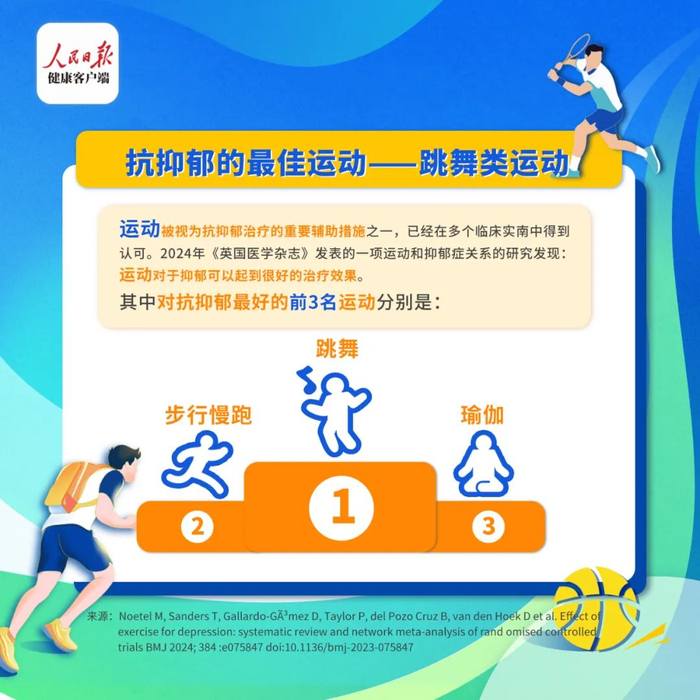 你有没有发现,一场大汗淋漓的运动过后,整个人的心情都更好了!运动作为一种改善身心健康的有效手段,已经在多个临床实践指南中得到认可。2024年1月,发表在《英国医学杂志》上一项关于运动和抑郁症关系的发现:运动对于抑郁可以起到很好的治疗效果,其中对抗抑郁最好的运动是——跳舞!