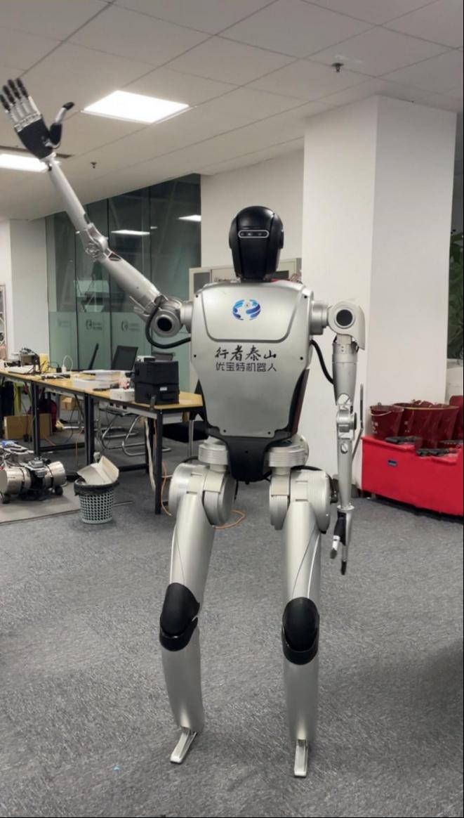 “行者泰山”人形机器人开发48天实现落地行走,创造出业界人形机器人开发速度纪录。“R2版本的‘行者泰山’人形机器人,其头、手、足等部位更加‘类人化’,大脑接入DeepSeek-V3模型,具备人机交互能力,还能做出抱拳、握手等精细动作。”不仅如此,“行者泰山”目前能以7.2公里/小时的速度稳定奔跑,达到国内领先水平。此外,R2还具备了情感识别功能,能够感知人类的情绪变化,并做出相应的反应,进一步提升了用户体验。无论是在工业生产中的精细操作,还是在服务领域的人机协作,R2都展现出了卓越的性能和广泛的应用潜力。