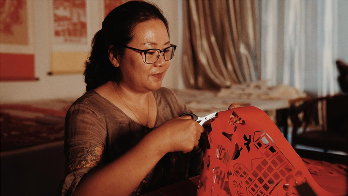 1972年出生的胡志荣是达茂旗百灵庙镇人,她自幼酷爱剪纸与面塑(花馍馍),现为包头市民间文艺家协会理事、达茂旗工艺美术协会主席、达茂旗第十五届优秀政协委员、达茂旗新联会常务副会长。“目前我创作的主要方向是岩画。从去年开始,我一直在各个地方看这些岩画,搜集相关资料,已经创作了一部分牛皮纸岩画剪纸作品,还在研究岩画的相关文创作品。”胡志荣说,未来她将继续立足达茂历史文化,创作一系列反映达茂北疆文化主题的剪纸作品,“也希望自己的作品能够被更多的人看到。”