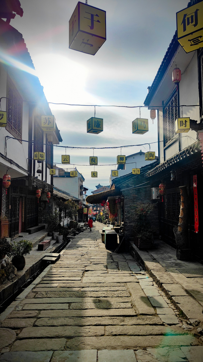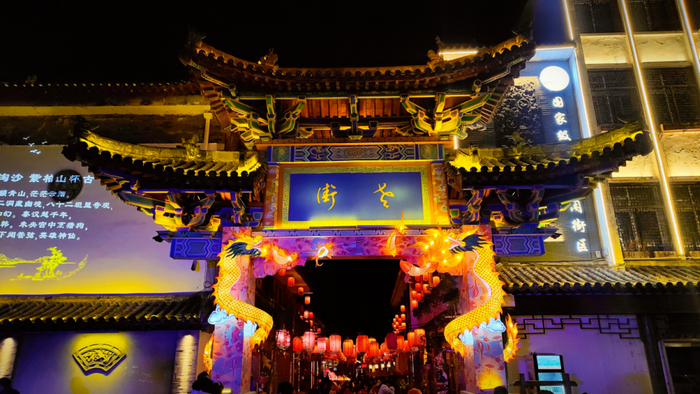 从高速口下来一直沿着留坝县的紫柏大道走,到县城中心能看到几处立着仿古牌坊的路口,拐进去就是这座小县城里几乎最热闹的地方——留坝老街。