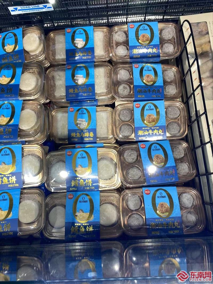 在冷冻食品冰柜中,思念潮汕牛肉丸包装印着醒目的“0反式脂肪”标识,配料除牛肉、猪肉等食材外,还含有三聚磷酸钠。