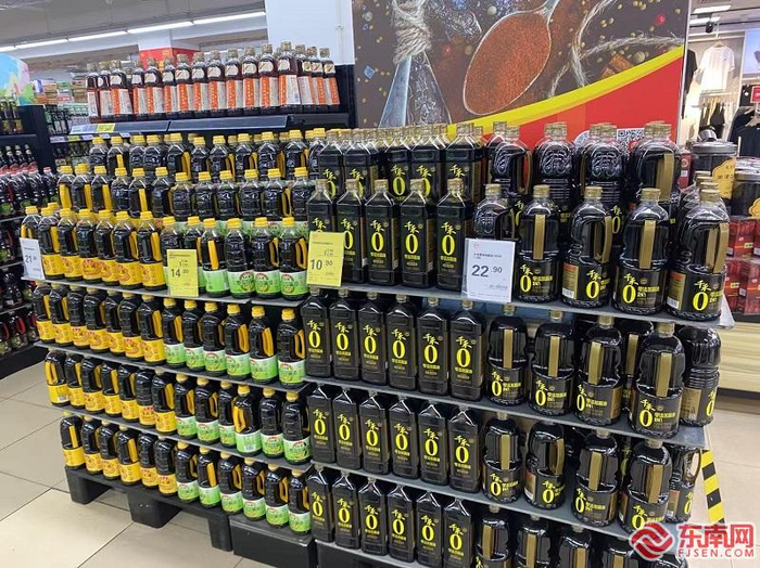 值得注意的是,近日千禾味业旗下“千禾0”酱油产品因媒体送检事件备受关注。福州市场上,千禾产品销售广泛。在永辉超市西门店,千禾的生抽酱油摆满了货架,包装上除了“0”字外,还写有零添加酱油的字样。朴朴超市APP上搜索“千禾”,会出现多款不同包装和规格的千禾生鲜酱油。产品商标上“0”字醒目,商品介绍中含有“零添加”“0添加防腐剂”等表述,宣称不使用味精、色素、防腐剂等。部分旧包装瓶身的“0”字里,还直接写着“零添加”。