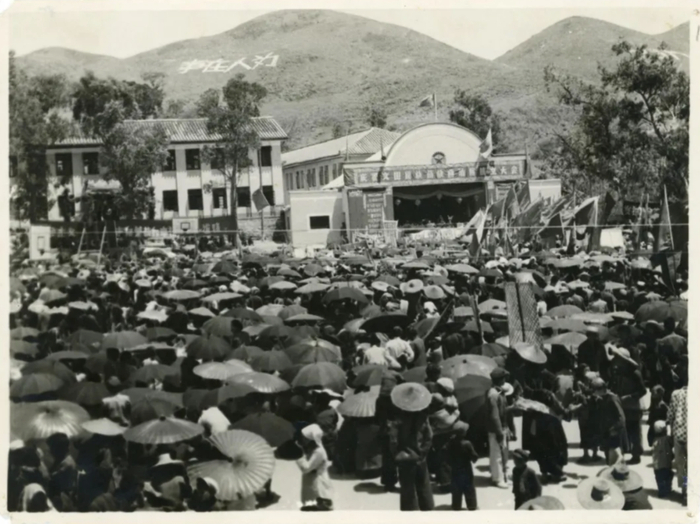上面这张照片记录了1958年庆祝文山州成立大会的珍贵瞬间。画面中,人们身着盛装,欢聚一堂,共同庆祝这个重要的时刻。来源:文山州档案馆