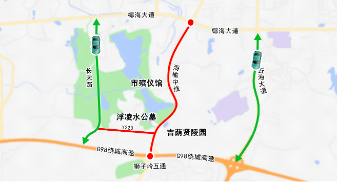 清明期间,233乡道、海榆中线等陵园周边路段车流集中,请途经车辆视情绕行长天路、丘海大道往返。