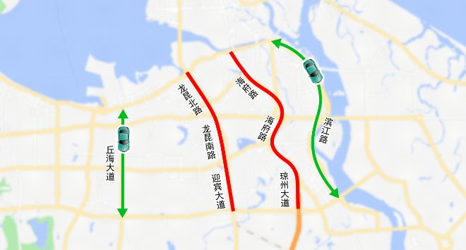 进出城车辆绕行丘海大道、滨江路往返。