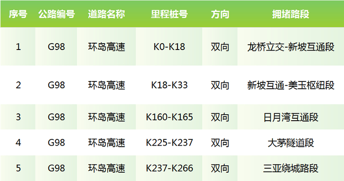 4、在高峰时段,往来海口、三亚、儋州、万宁、琼海等市县的车辆可根据自身情况通过G9811海三高速、G9812海琼高速、G9813万洋高速、S22文临高速出行或者选择交通压力小的时段出行。