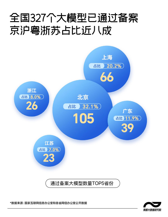 和登记相比,生成式人工智能大模型的备案流程更为严格。根据最新通告显示,截至2025年3月19日,京沪粤浙苏五省份占榜TOP5,比重接近全国总量的80%。