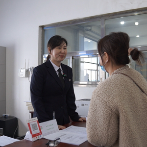 徐微正在为群众办理相关手续(央广网记者李雪 摄)