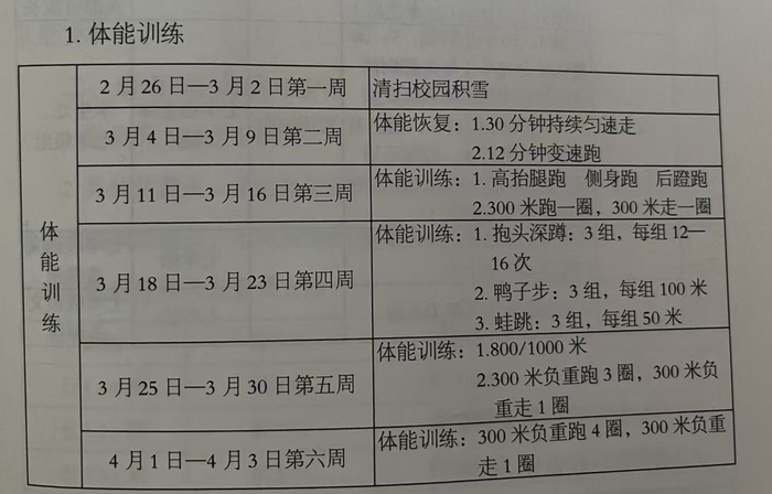 这得益于学校提前精心安排的体能训练。