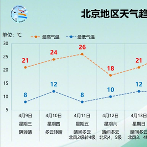 从目前的预报情况来看,今年4月,北京地区的平均降水量还将比常年同期偏少,但平均气温会比常年同期略偏高。