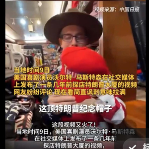当地时间4月9日,美国喜剧演员沃尔特·马斯特森在社交媒体上发布了一条几年前探店特朗普大厦的视频,发现里面摆放的商品几乎都是中国制造。从帽子到袜子,各式纪念品都是中国制造,有的虽然撕掉了标签,依然露出中国制造的印记。有网友称,现在看这一幕简直是讽刺意味拉满。“美国一些人穿着中国制造的商品然后却抨击中国”“真的太奇怪了,虚伪到极致”。(据4月11日央视网报道)