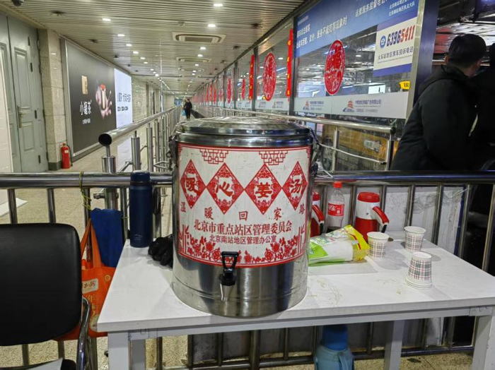 北京南站、西站多趟列车晚点 站区的姜茶、避风休息区全都准备好了