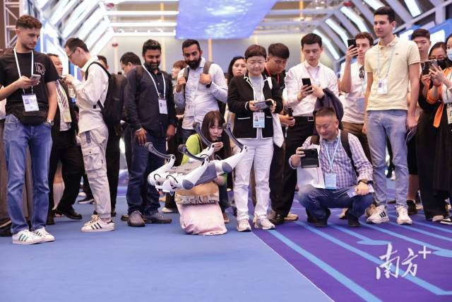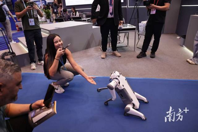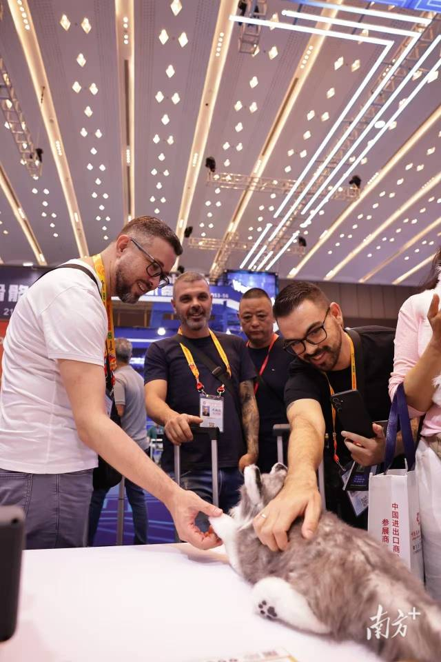 “太可爱了!我忍不住亲了它一口。”美国采购商伊森·帕克对深圳大象机器人的机器狗“一见钟情”,立刻决定现场下单。