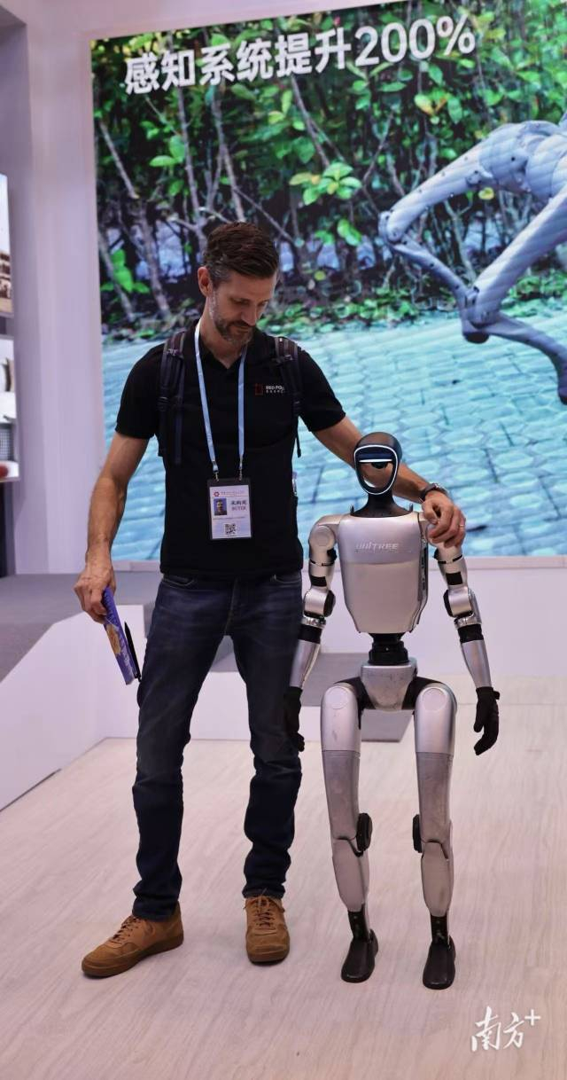 就在不久前,G1再次实现技术升级,成为全球首个完成原地侧空翻动作的人形机器人。“未来,G1还将基于深度强化学习和仿真训练,借助AI技术的加速发展,不断进行升级和演进。”宇树科技展位负责人说,希望在广交会上展示创新产品,拓展更大的市场。