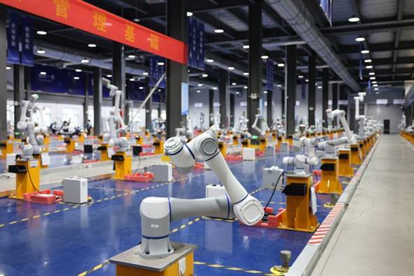 在越疆机器人日照生产基地,一款机器人正在跟人类学习开瓶盖、叠衣服等家务活儿。三个摄像头搭载着机器视觉算法,简单训练后,聪明的机器人就能独立完成工作。为了提高机器人的安全可靠性,越疆还给机器人手臂研发了一款电子皮肤,当障碍物接近的时候,它能自我识别停止并进行避让。
