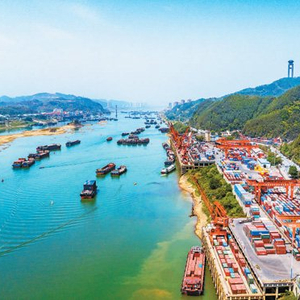 近日,在广西梧州港李家庄作业区,船舶正在进行装卸作业。该港为中国—东盟自由贸易区等提供综合物流服务。