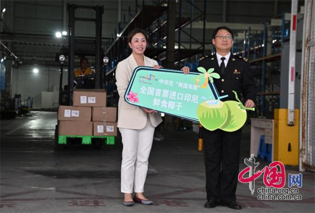 2025年4月12日,一批重200千克的印尼鲜食椰子顺利抵达福建福州长乐国际机场,这是全国首票进口的印尼青椰。新华社记者 姜克红 摄/新华社图片库