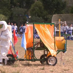 一枚由PVC管、钢管和铝皮焊接的自制水平载人火箭骤然启动,红色尾焰闪闪发光,白烟如巨龙翻滚,声音雷鸣般轰鸣。操场上,数百名学生齐刷刷仰头定格成向日葵阵列,惊呼声此起彼伏。火箭最终停留在远处的草坪上。郑德杨摘下沾满油污的手套,悄悄抹了抹眼角。这一刻,他等了十年。