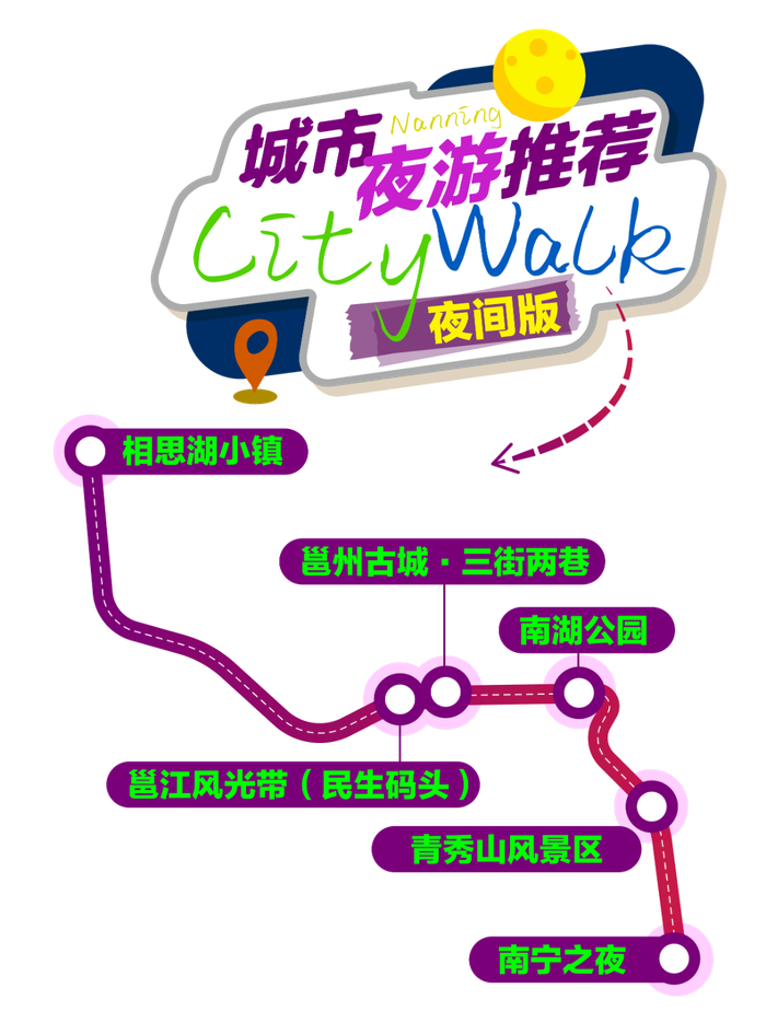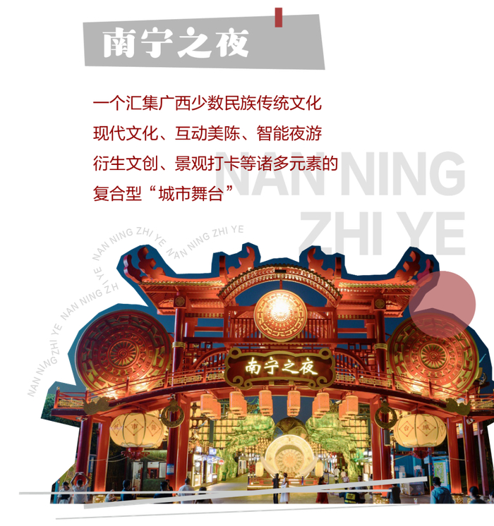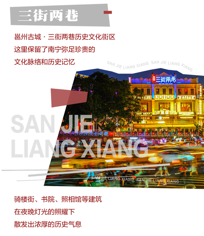 特别活动:“璀璨邕州·老友南宁”大型沉浸式光影演绎,将声、光、电、影等前沿科技巧妙融合,游客可沉浸式体验璀璨邕州的似水流年及“老友南宁”浓浓的烟火气。