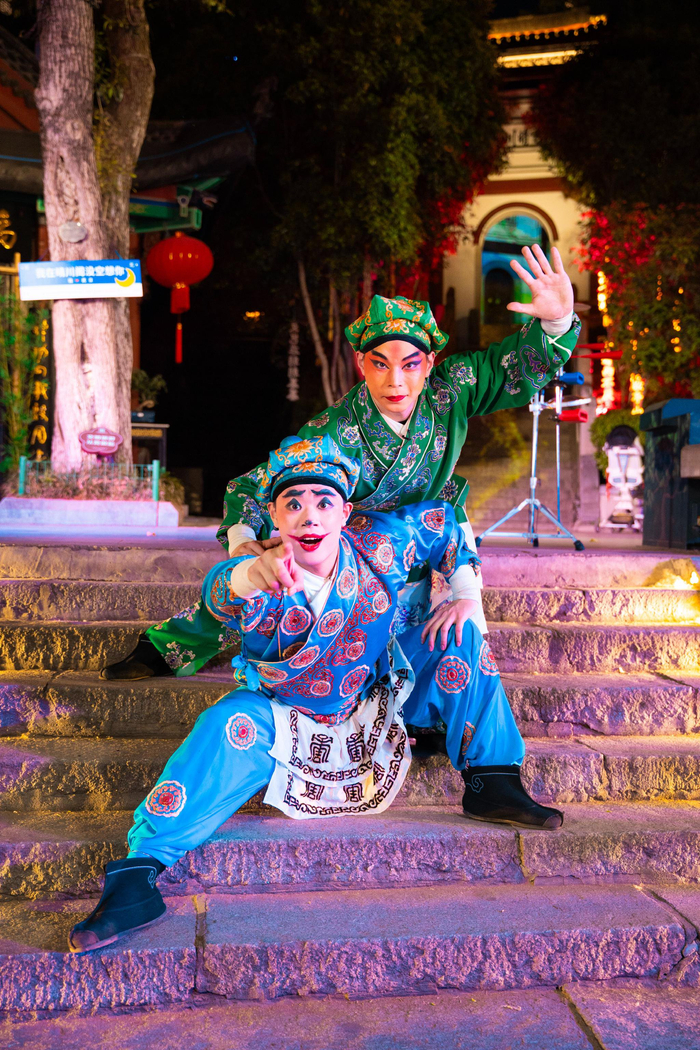 “楚剧本身的特点就是接地气,活泼、诙谐,实景演出中,我们更是充分发挥这些特点。”武汉楚剧院青年演出团团长、《又从西厢过》导演余维刚说,楚剧的诙谐和戏曲本身的唱念做打相得益彰。武丑将插科打诨与武戏表演融为一体,小旦们爽朗活泼,将花枪舞得虎虎生风,引来阵阵喝彩。