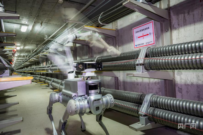 夜幕下,深圳前海电缆隧道内,一只银白色的“机器狗”正踏着机械步伐和运维人员开展巡检工作。这是深圳地下电缆隧道运维“人工智能+立体巡检”的新模式,为保障城市电网安全运行提供了新方案,也为前海片区十五运电力可靠供应保驾护航。