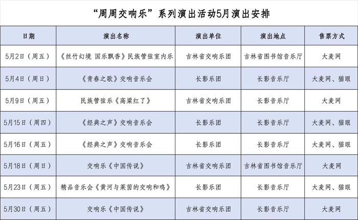 5月,吉林省交响乐团将为观众带来一场场盛大的音乐盛宴。