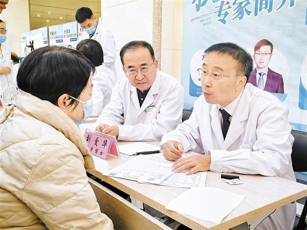 北京天坛医院神经介入专家刘爱华(右一)挂职自治区人民医院副院长期间,赴吴忠市人民医院开展义诊。宁夏日报记者 马 骏 铁志平 李 良/图