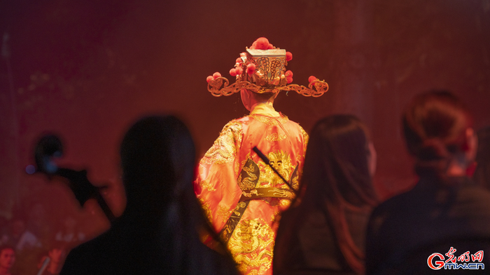 启动仪式上,戏曲演员等待大戏开演