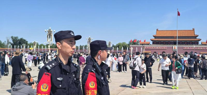 “五一”假期首日,天安门广场上人头攒动,北京市公安局天安门地区分局巡警三大队副大队长司马岳越表示,4月30日晚8点,北京市公安局已加大警力投入,在广场各出入口、地下通道、门洞等易拥堵点位增派警力,对游客进行及时疏导。同时,天安门广场东侧设置了便民服务车,游客若遇突发状况可自行前往。