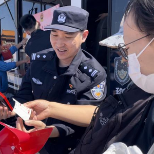 据介绍,便民服务车每年都会定期推出礼品、纪念章供来京旅客收集作纪念,而反诈民警们,利用旅客排队的闲暇时间,以诙谐趣味的问答与旅客进行互动,逐一科普反诈知识,还会发放反诈宣传纪念品。